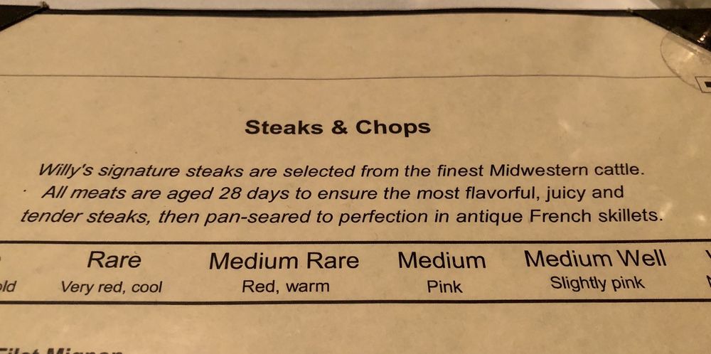 Willy's Steakhouse Grill & Sushi Bar Menu